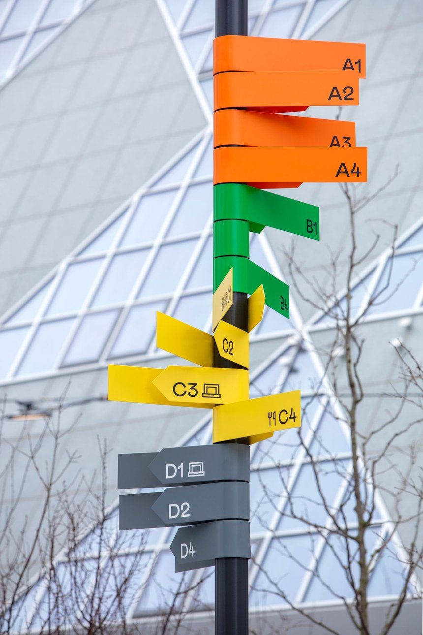 Cualquiera que no esté familiarizado con su entorno se beneficia de una señalización direccional diversa. Puede ser tan simple como una placa en cada cruce que indique girar a la izquierda o a la derecha, o tan completa como líneas de colores en el suelo que guíen directamente a su destino.