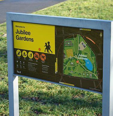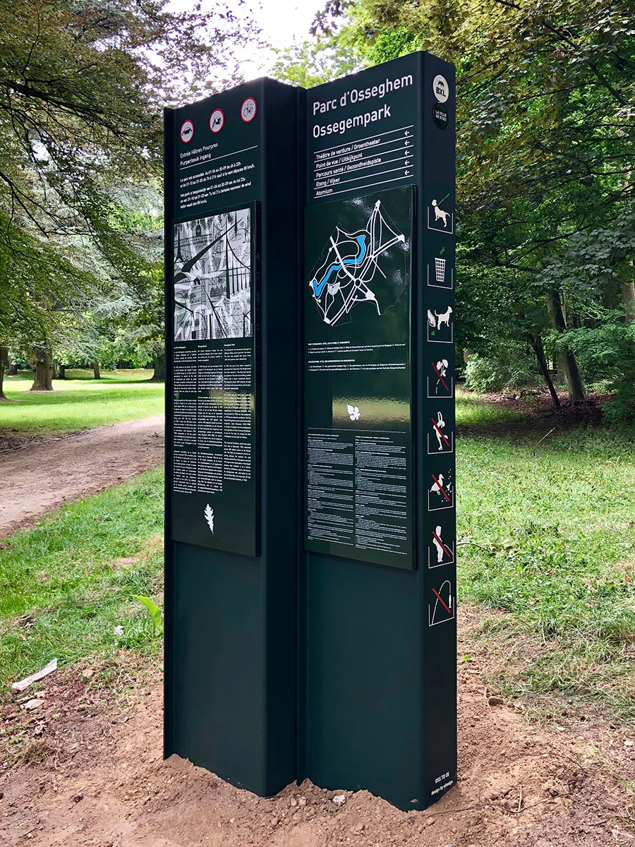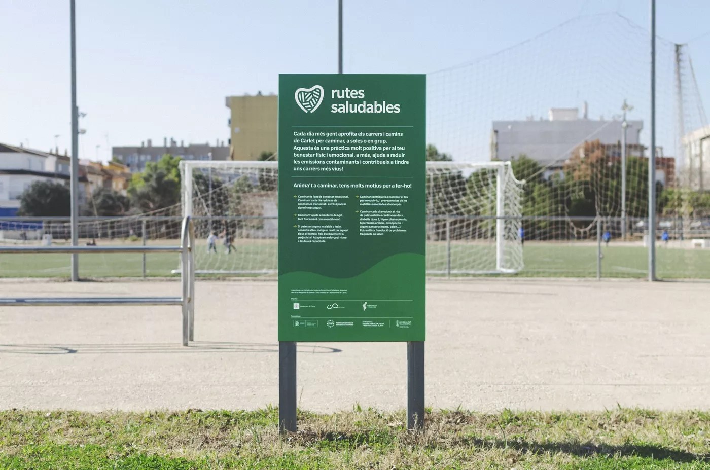 - Señalización de hitos (placa de donantes; marcador histórico)
