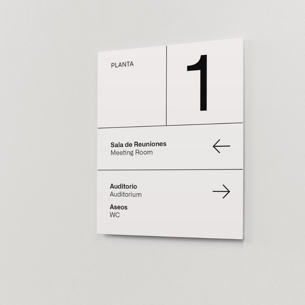 La identificación es el tipo más común de señalización de orientación. Indica a una persona cuando ha llegado a su destino y también sirve como referencia general para la orientación.