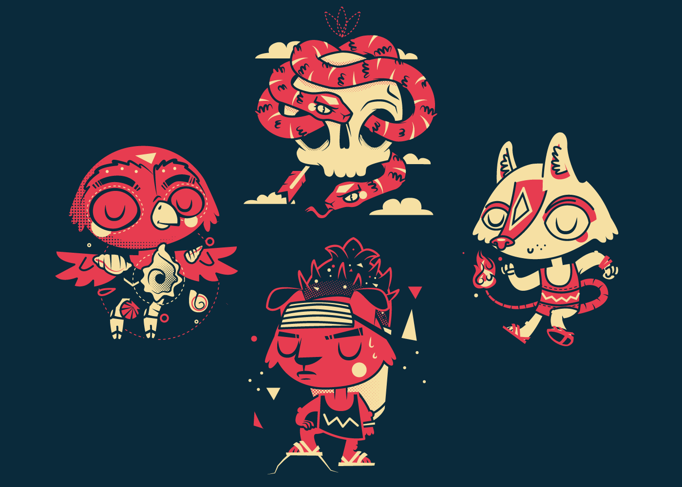Este proyecto multifacético demuestra la versatilidad de la ilustración vectorial para crear obras vibrantes y detalladas. Incluye una variedad de fanarts y trabajos académicos que representan personajes extravagantes y elementos culturales propios de México. Las piezas destacan por su uso de colores intensos y diseños que ponen en valor la singularidad y belleza de esta cultura.